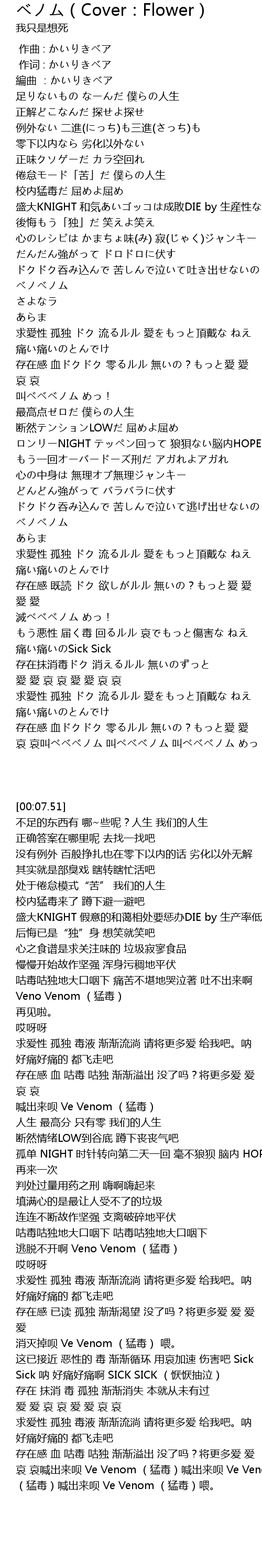 | [00:51.92] | ドクドク呑み込んで 苦しんで泣いて吐き出せないの ベノベノム |