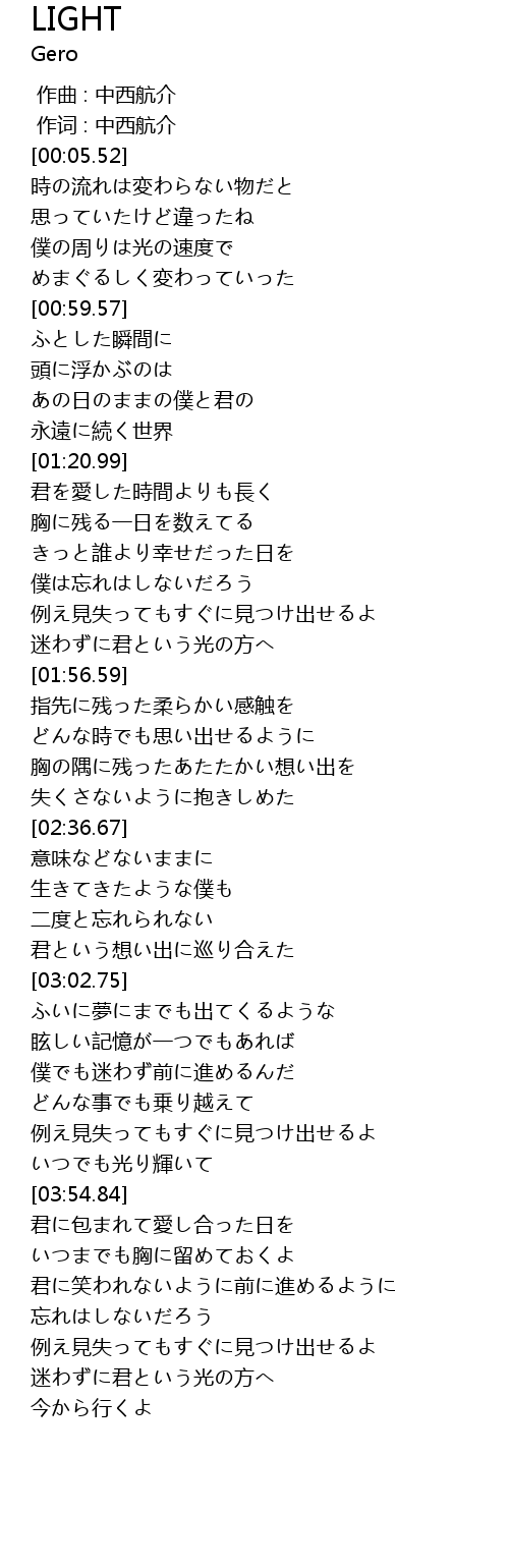 | [03:59.83] | いつまでも胸に留めておくよ |