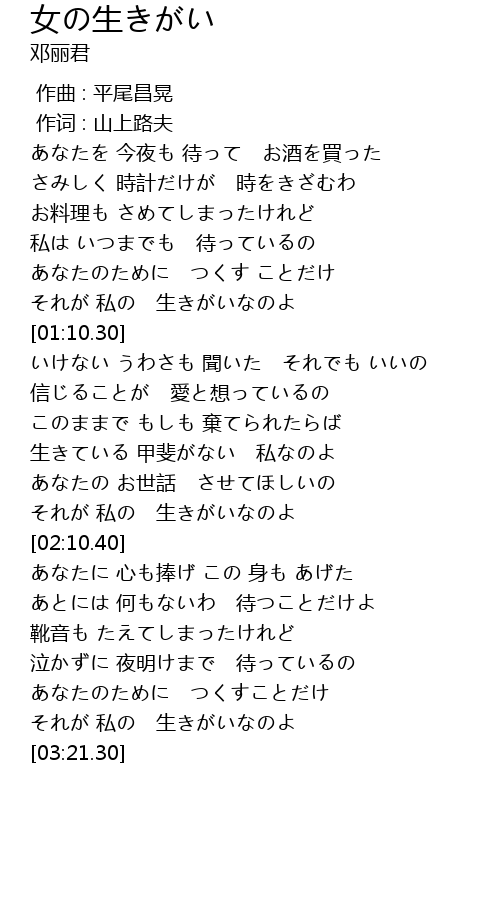 | [00:49.50] | 私は いつまでも 待っているの |