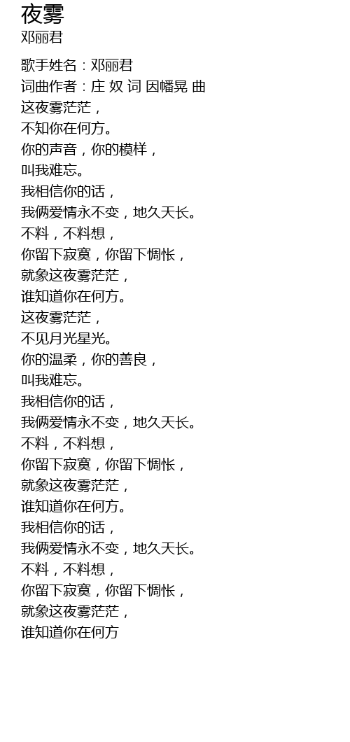 | [00:01.27] | 歌手姓名:邓丽君 |