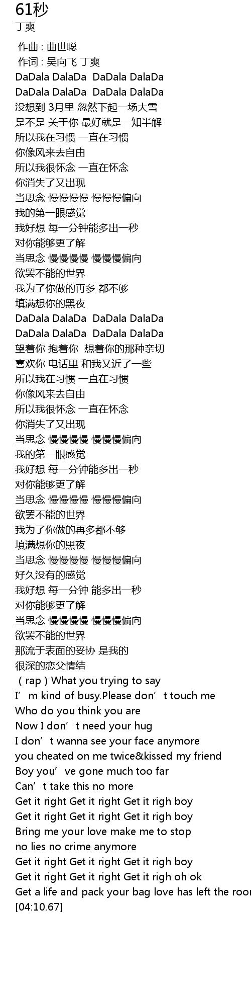 | [00:41.86] | DaDala DalaDa DaDala DalaDa |