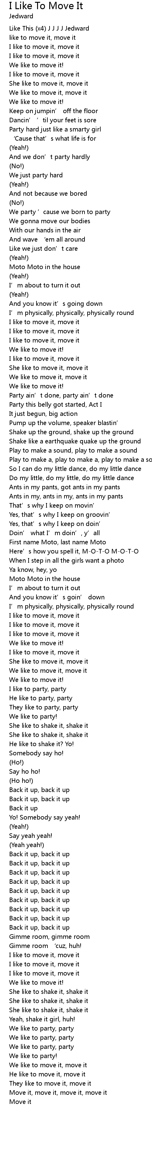 | like to move it, move it | |
