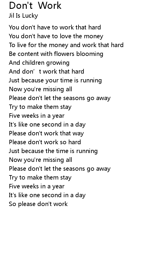 | Please don' t work so hard | |