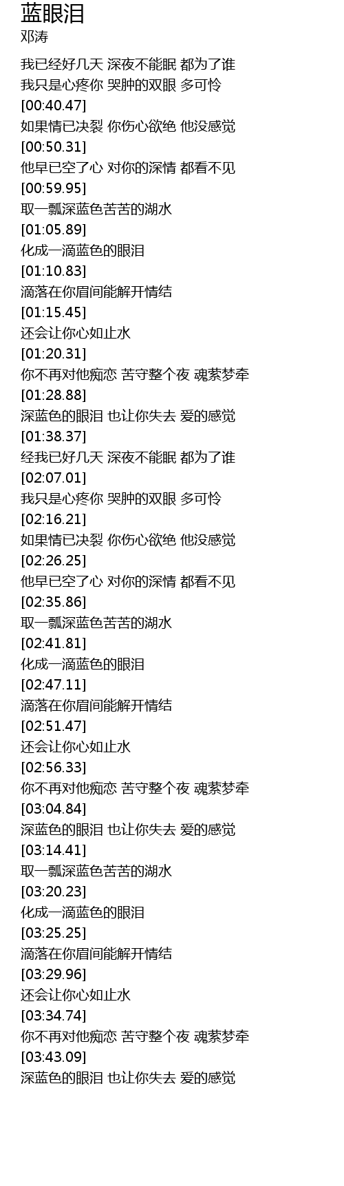 | [02:43.49] | 化成一滴蓝色的眼泪 |