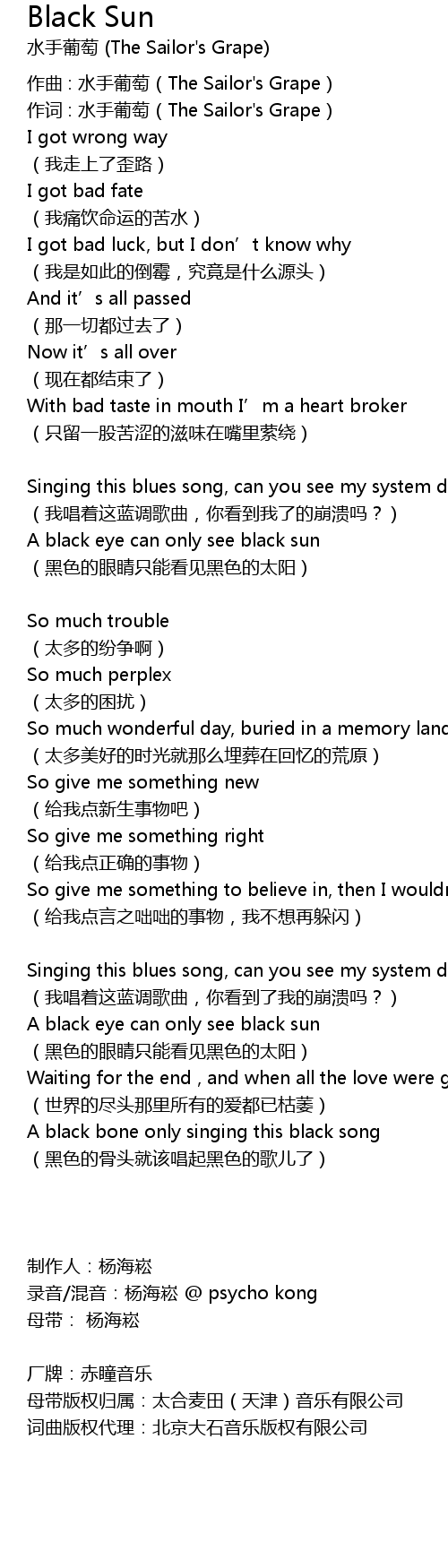 | hēi sè de yǎn jīng zhǐ néng kàn jiàn hēi sè de tài yáng | |