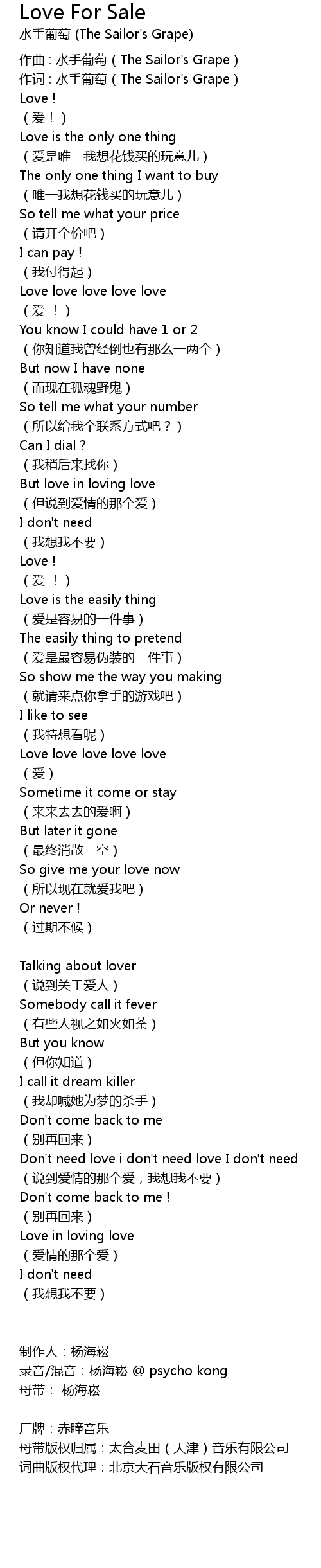 | 录音/混音:杨海崧 @ psycho kong | |
