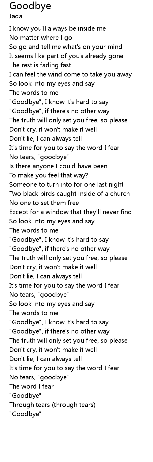 "Goodbye", I know it's hard to say