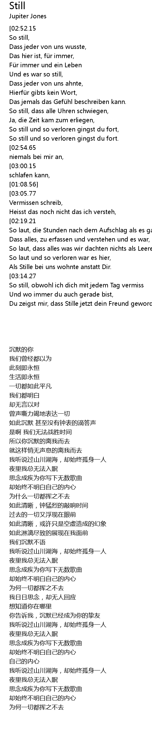 | [02:34.65] | So still, obwohl ich dich mit jedem Tag vermiss |