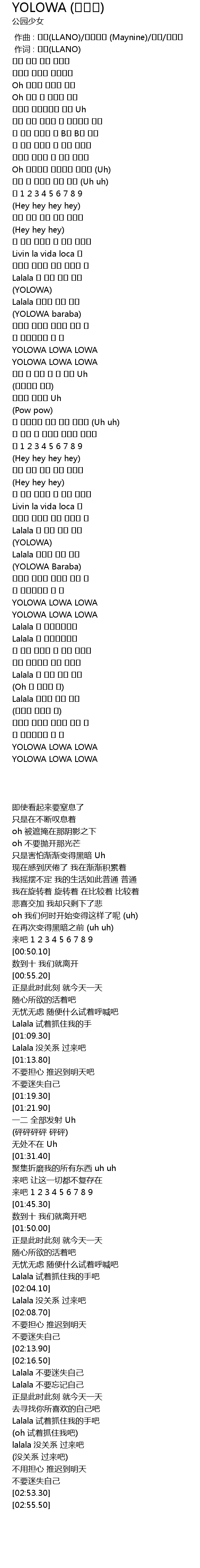 | [02:55.50] | YOLOWA LOWA LOWA |