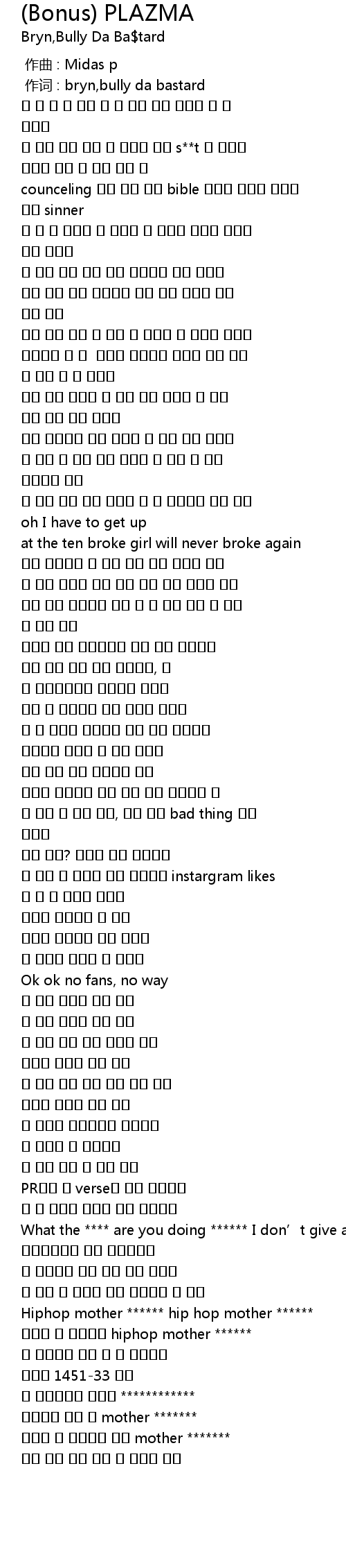 作词 : bryn,bully da bastard |