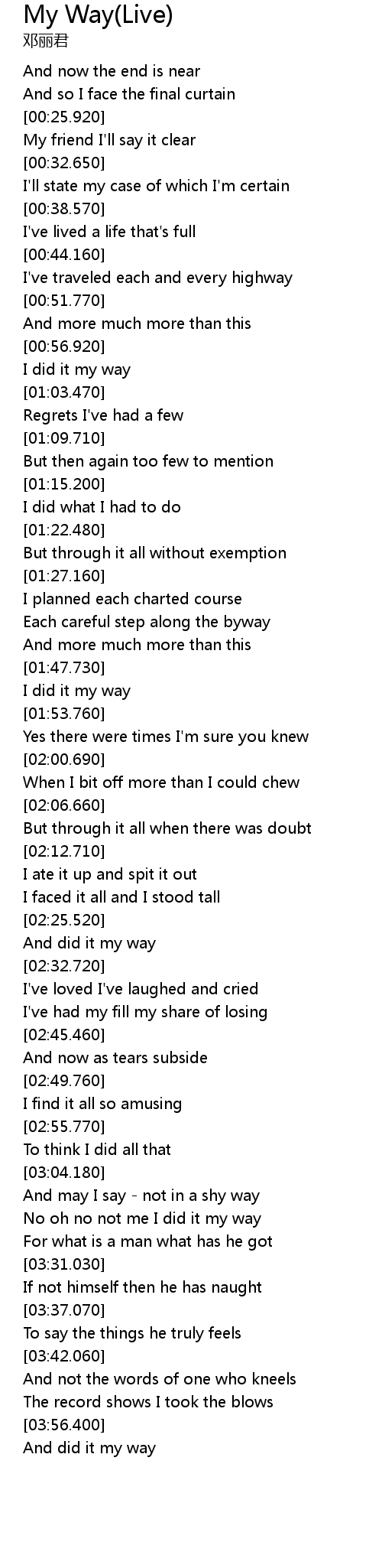 | [01:50.090] | I did it my way |