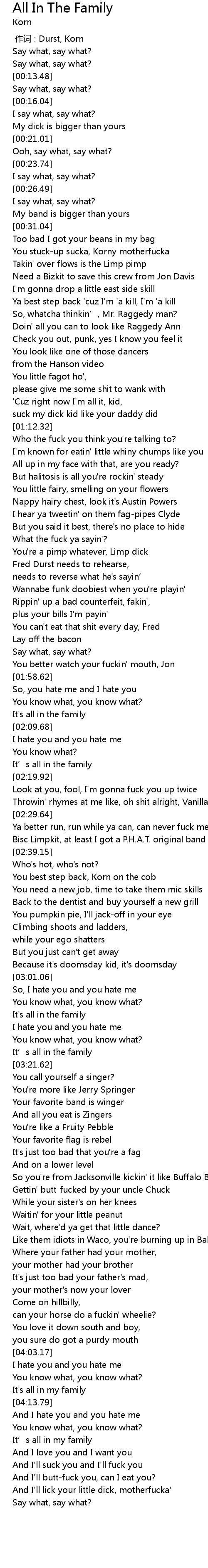 | [03:29.98] | It's just too bad that you're a fag |