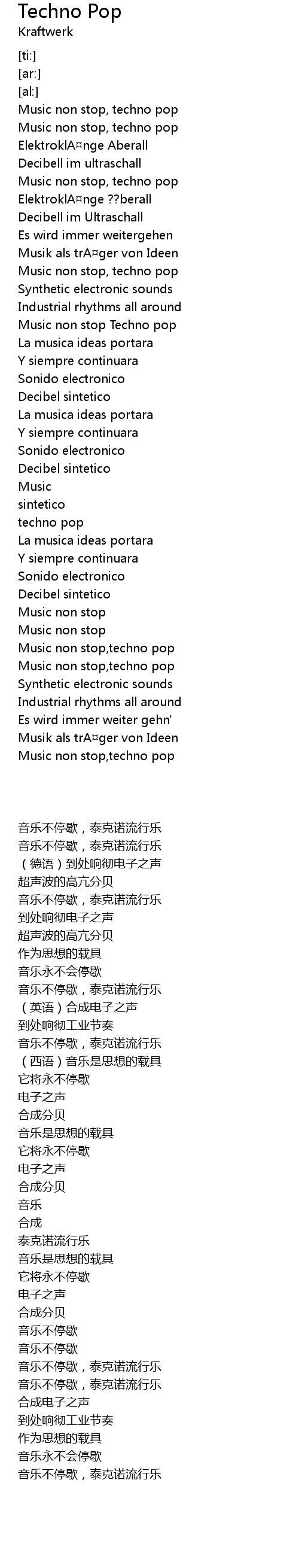 | [02:00.27] | 音乐不停歇,泰克诺流行乐 |