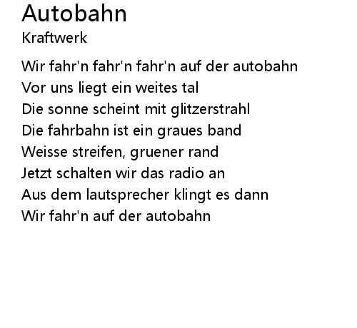 | Wir fahr'n fahr'n fahr'n auf der autobahn | |