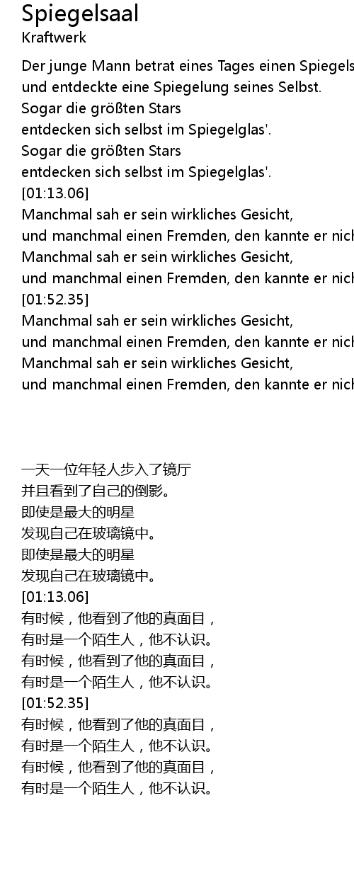 | [00:56.31] | entdecken sich selbst im Spiegelglas'. |