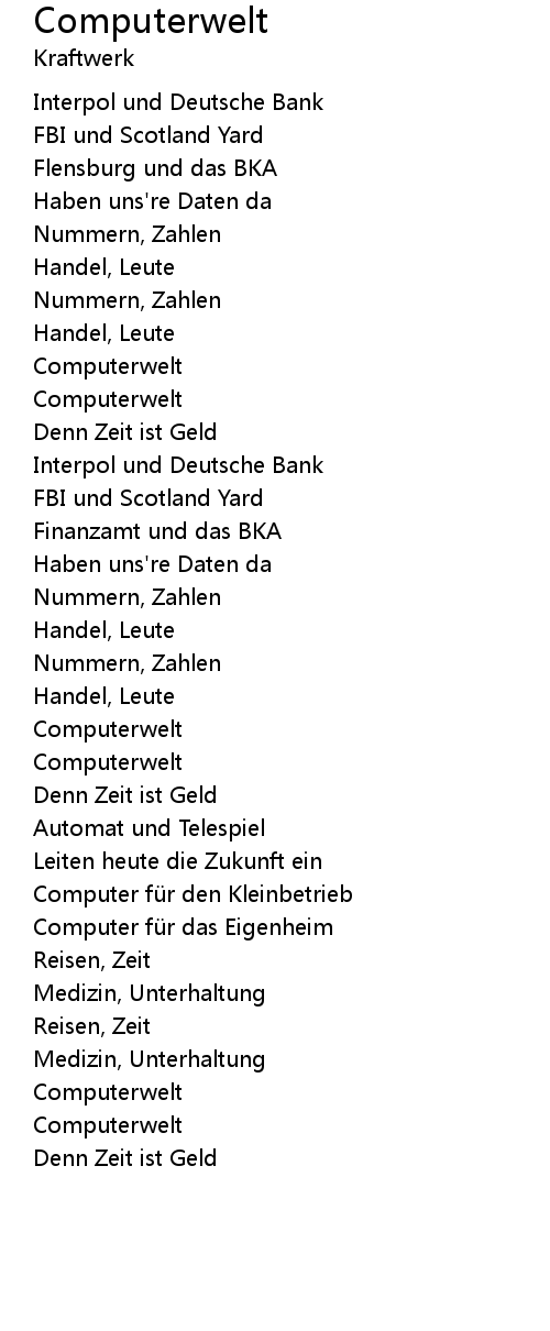 | 歌曲 | Computerwelt |