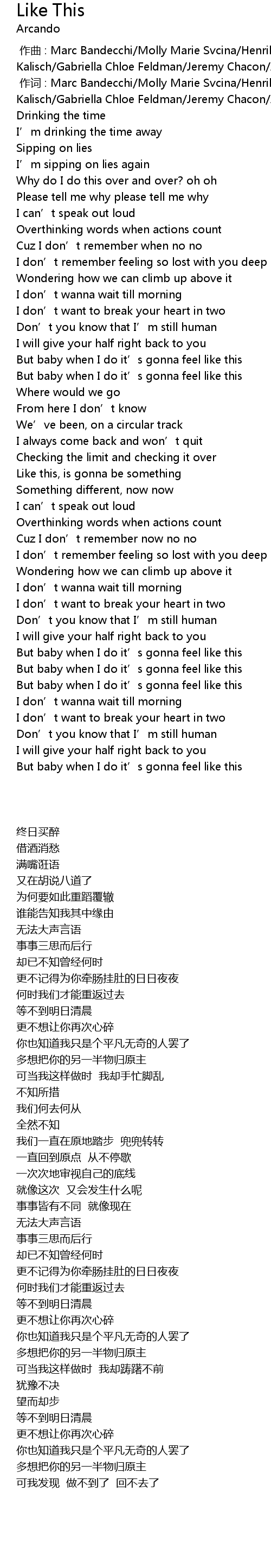 | [00:17.22] | I' m sipping on lies again |