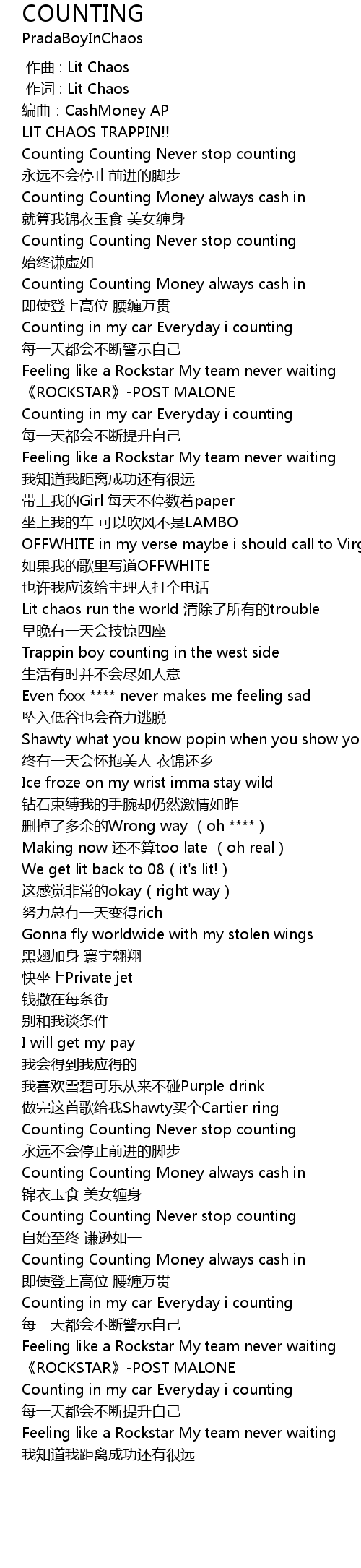 | [00:15.490] | Counting Counting Money always cash in |