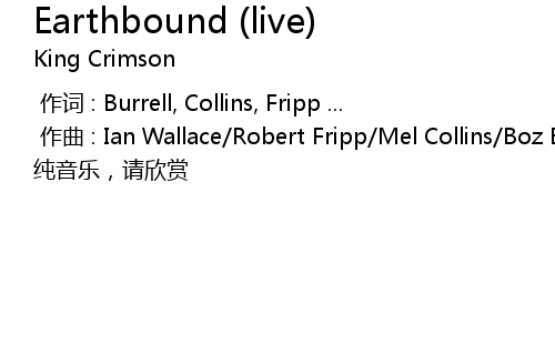 | [00:01.000] | zuo qu : Ian Wallace Robert Fripp Mel Collins Boz Burrell |