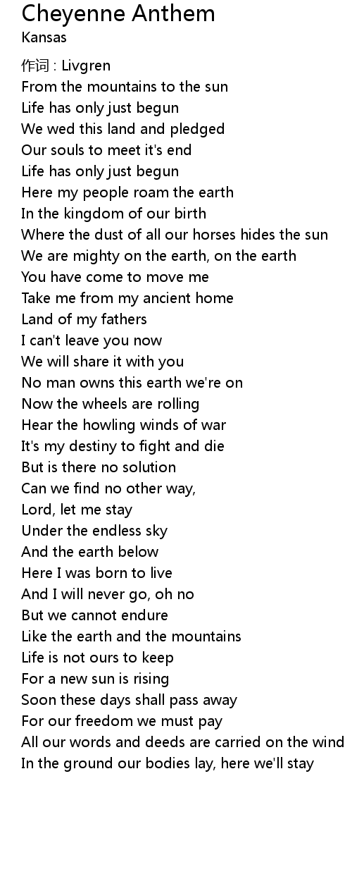 | 歌曲 | Cheyenne Anthem |
