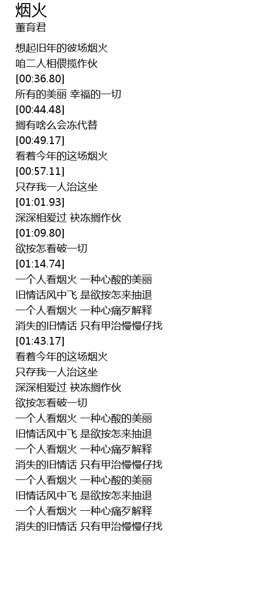 | [03:04.24] | 一个人看烟火 一种心酸的美丽 |