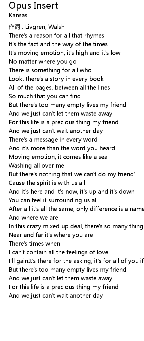 | 作词 : Livgren, Walsh | |