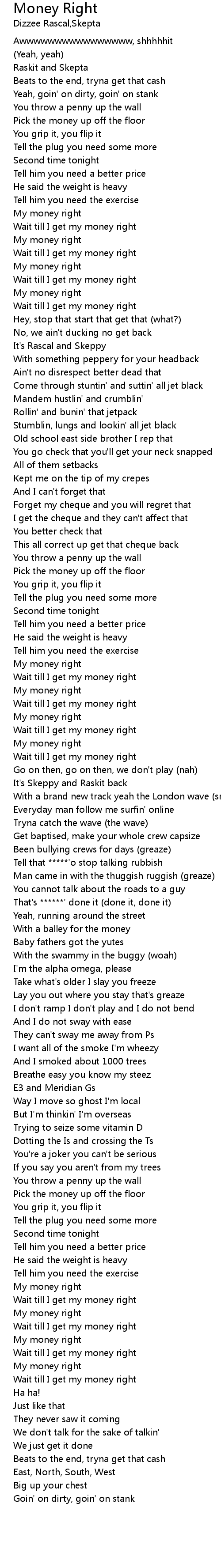 Money Right 歌词