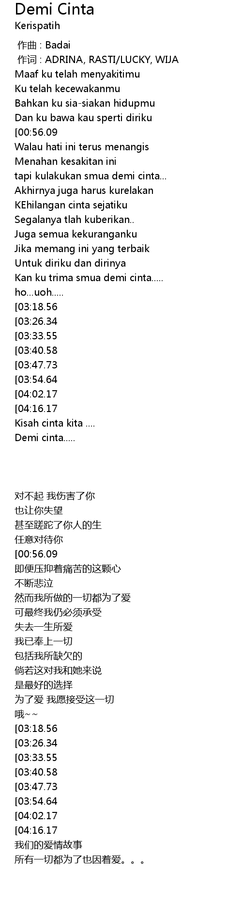 | [04:29.42] | Demi cinta..... |