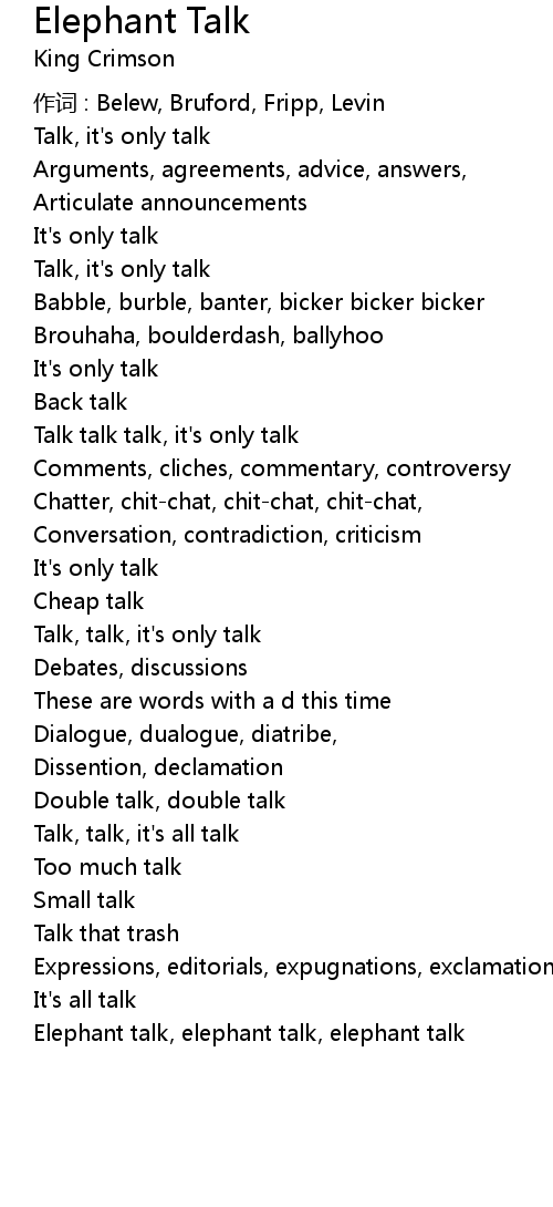 | 歌曲 | Elephant Talk |