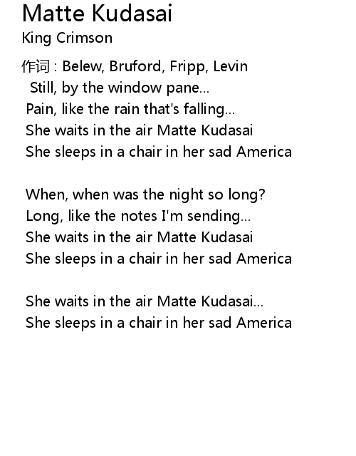 | 作词 : Belew, Bruford, Fripp, Levin | |
