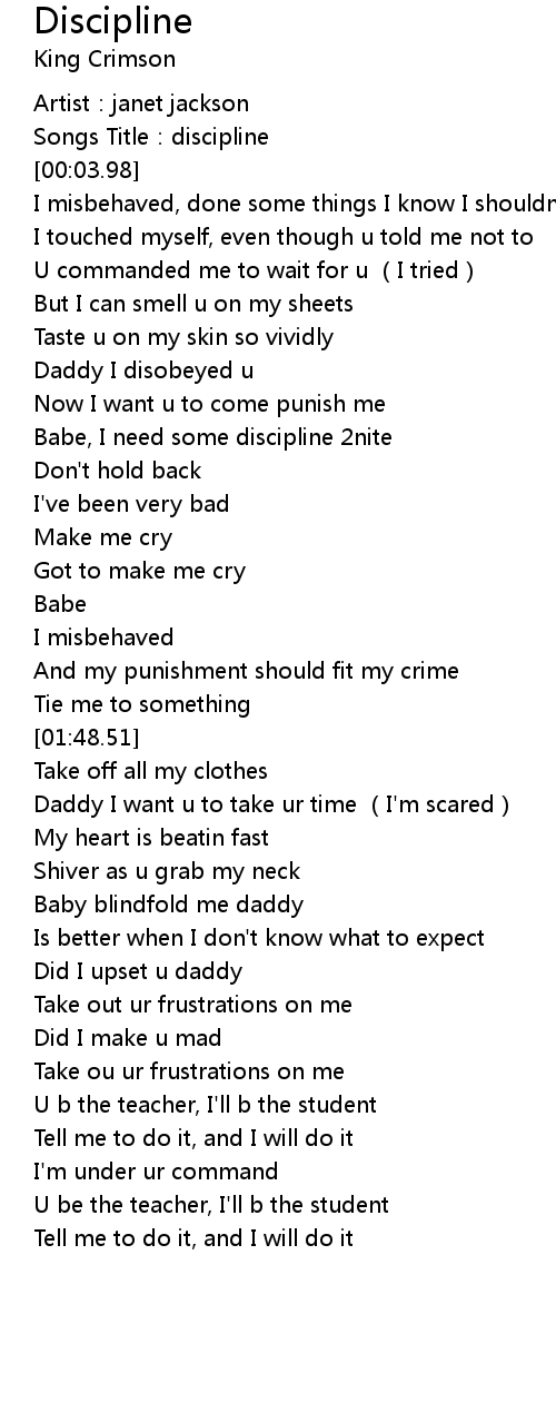| [01:03.07] | Babe, I need some discipline 2nite |