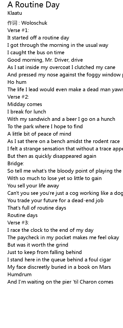 | 歌曲 | A Routine Day |