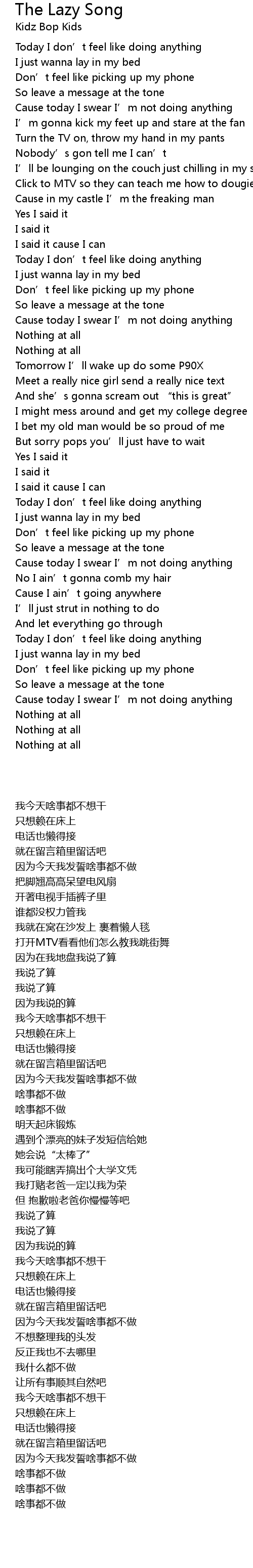 | [00:49.83] | 我今天啥事都不想干 |