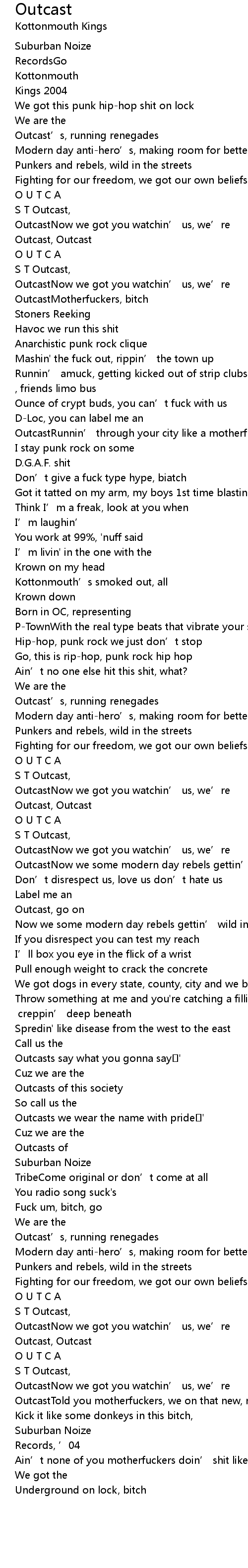 | OutcastRunnin' through your city like a motherfuckin' house rat | |