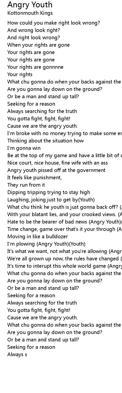 With your blatant lies, and your crooked views. (Angry Youth)(Youth)