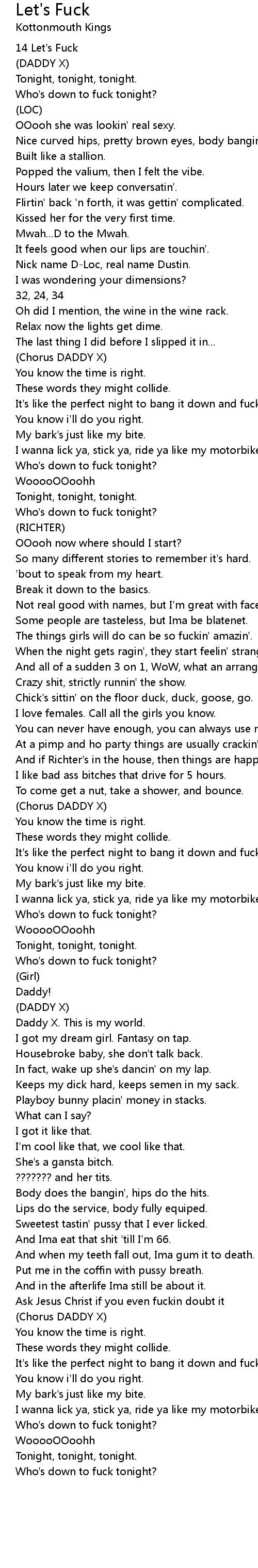 I wanna lick ya, stick ya, ride ya like my motorbike tonight. |