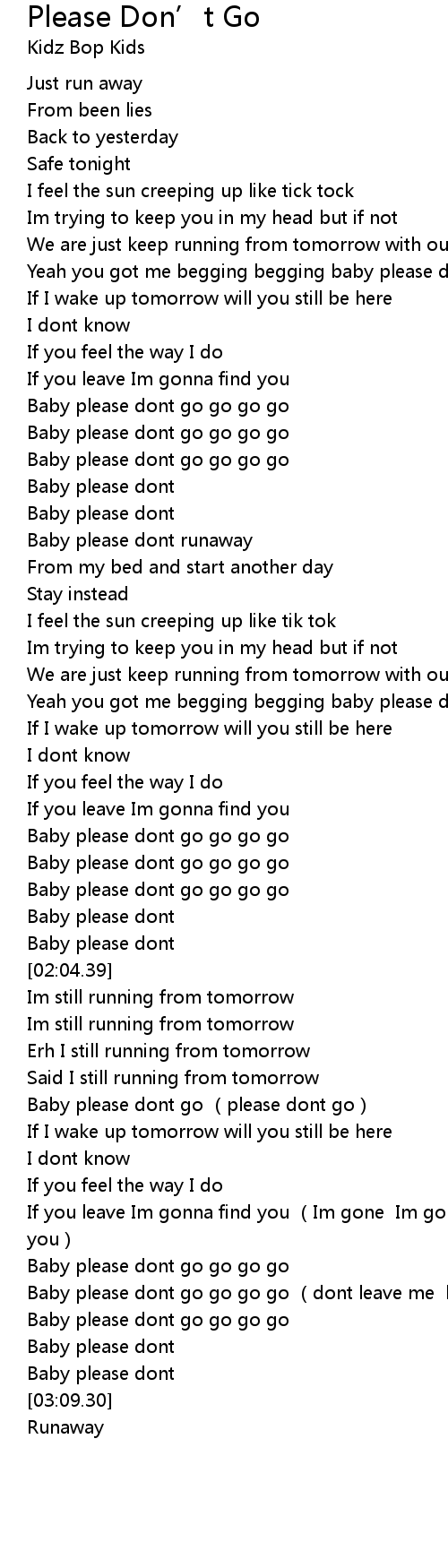 | [02:56.71] | Baby please dont go go go go dont leave me leave me |