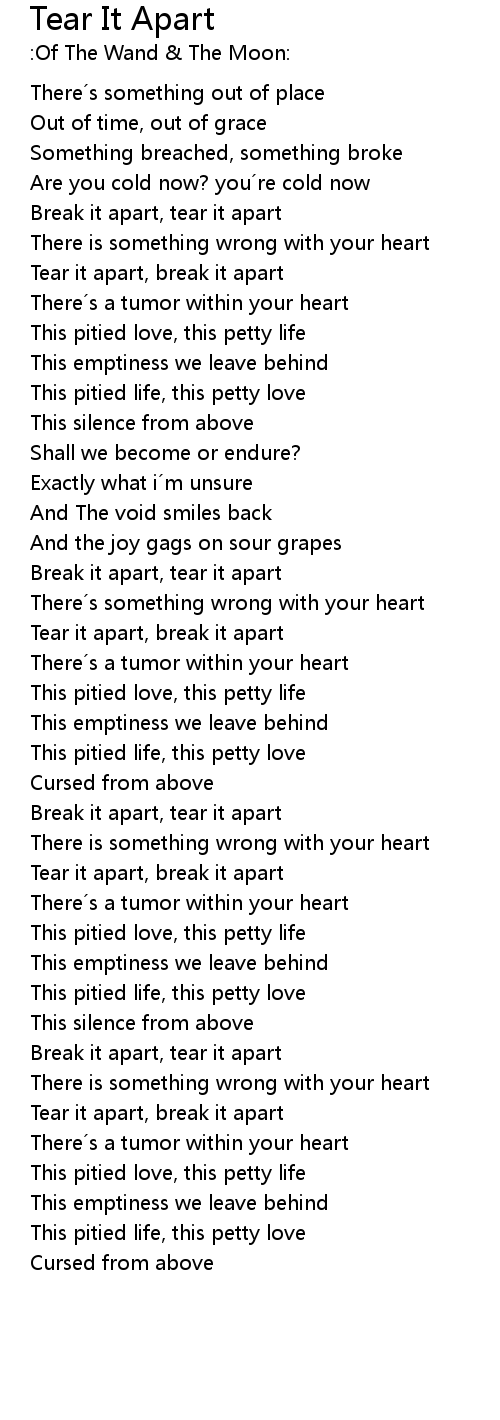 | Tear it apart, break it apart | |