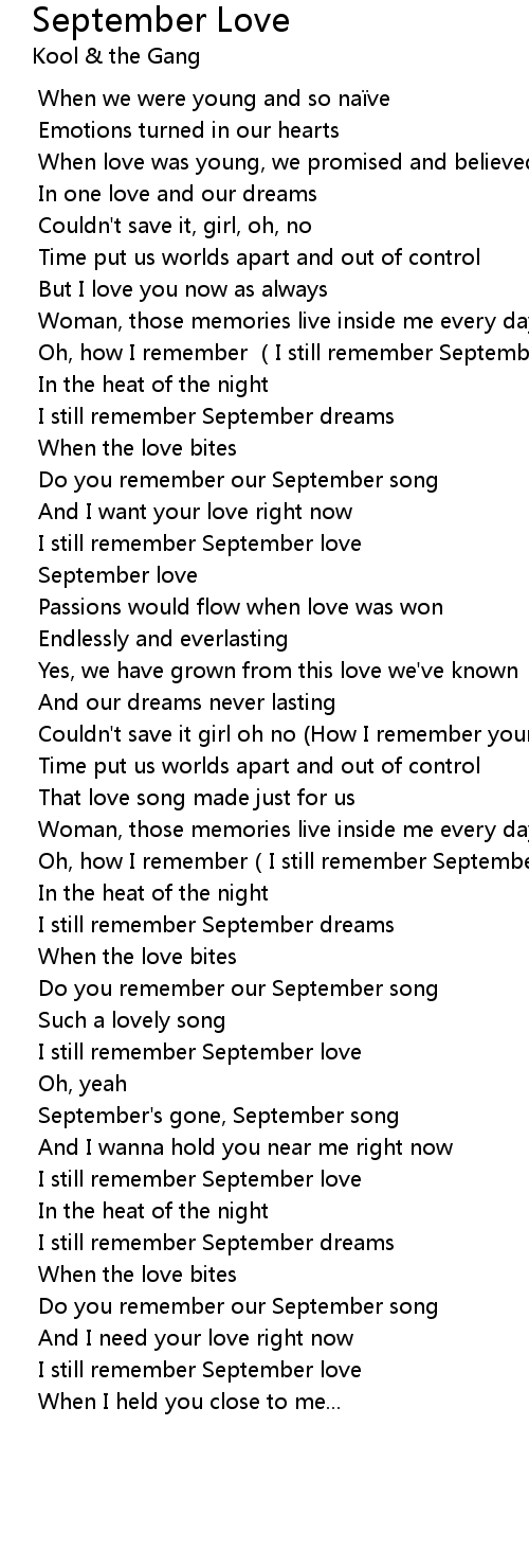 | [02:40.311] | Oh, how I remember I still remember September love |