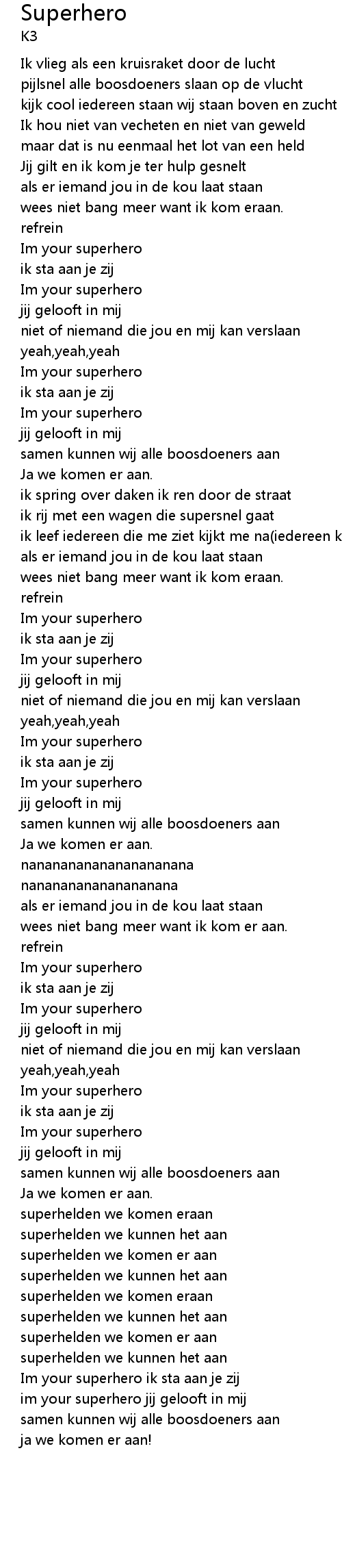 Im your superhero ik sta aan je zij |