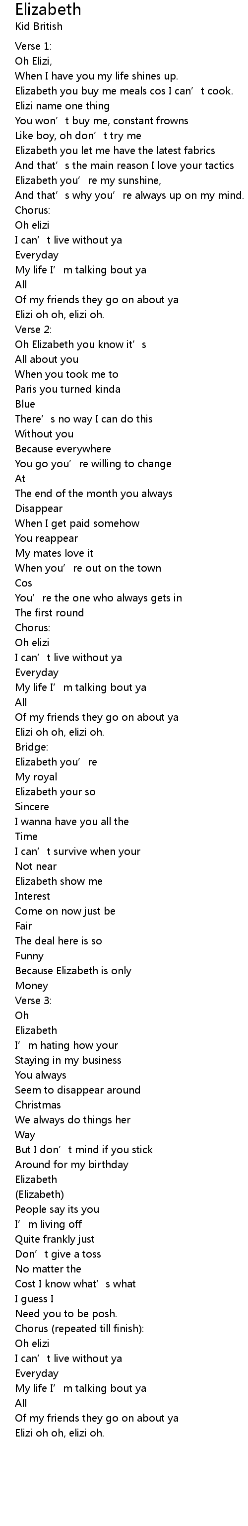 | Elizabeth you buy me meals cos I can’t cook. | |