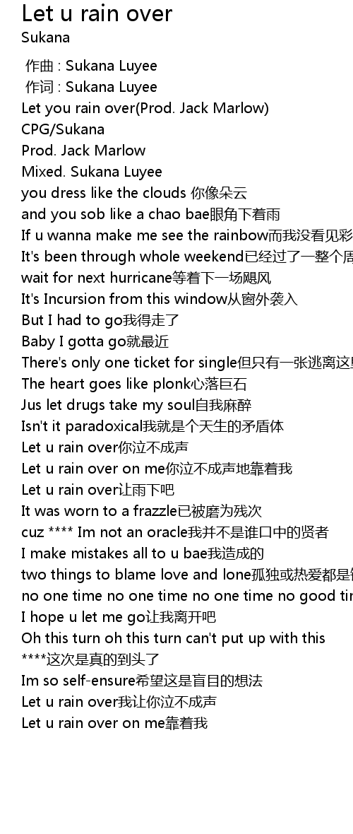 | [01:55.982] | Let u rain over我让你泣不成声 |