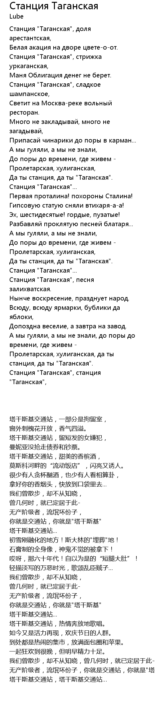 | [02:48.000] | Пролетарская, хулиганская, да ты станция, да ты "Таганская". |