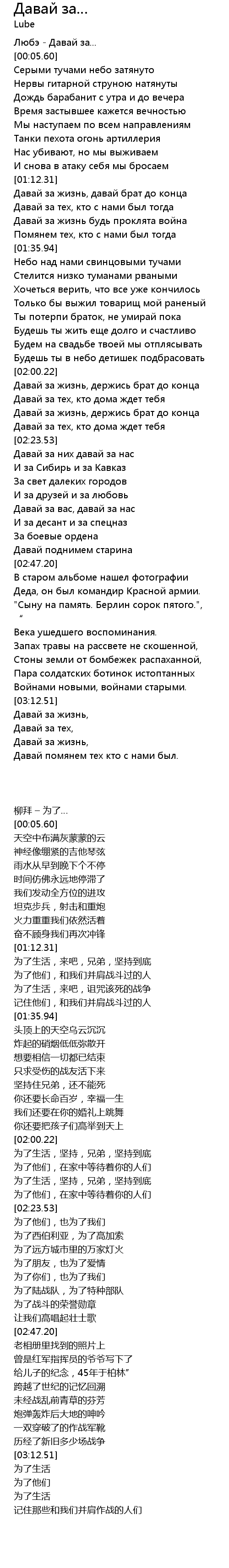 | [02:01.12] | 为了生活,坚持,兄弟,坚持到底 |