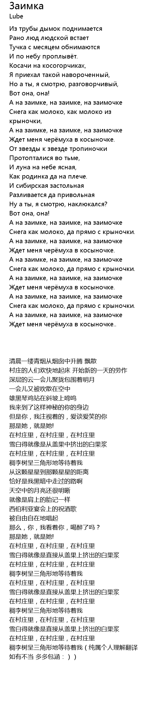 | [00:32.47] | А на заимке, на заимке, на заимочке |