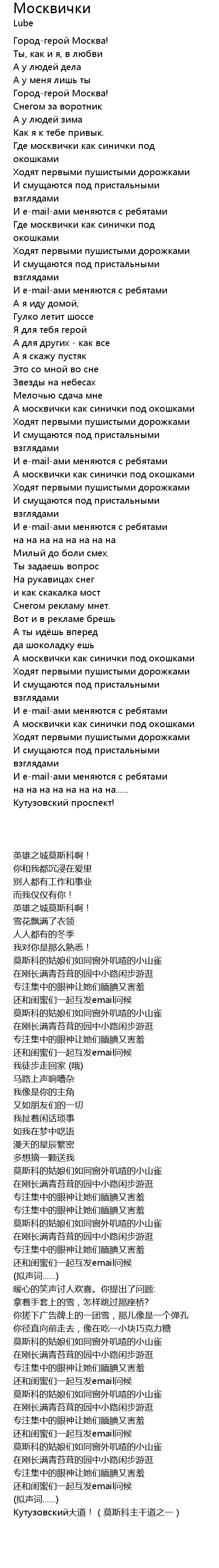 | [00:38.810] | 莫斯科的姑娘们如同窗外叽喳的小山雀 |