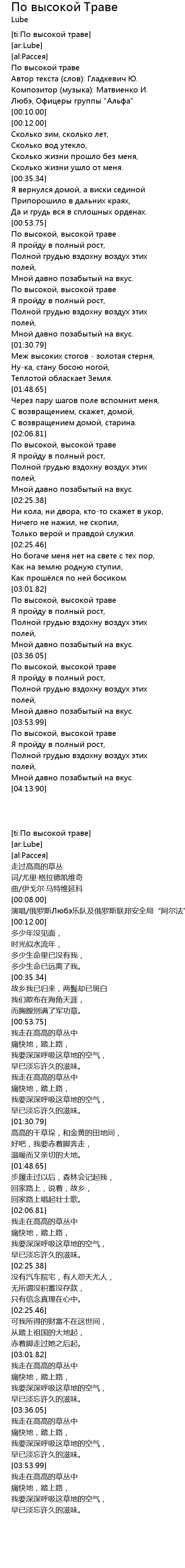 | [00:00.00] | По высокой траве |