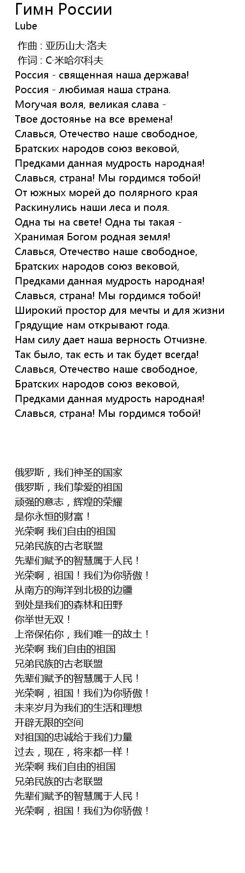| [00:01.00] | 作词 : С·米哈尔科夫 |