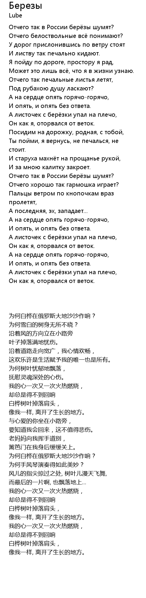 | [00:04.41] | Отчего так в России берёзы шумят? |