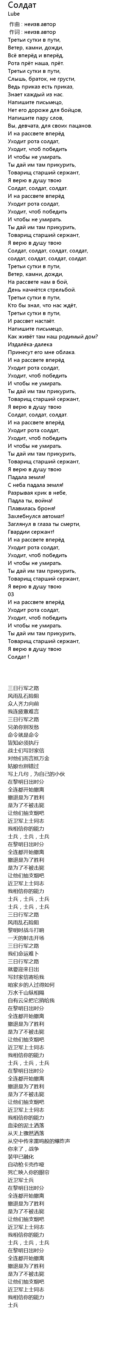 | [02:03.95] | солдат, солдат, солдат, солдат. |